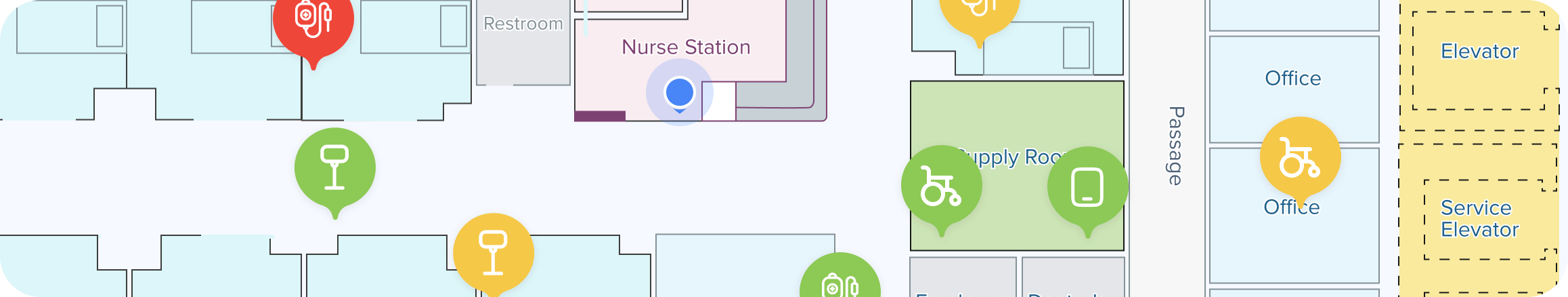 When many equipment markers appear on the screen, the map becomes overloaded. Nurses spend precious seconds identifying, filtering, or even counting markers—adding unnecessary cognitive load.