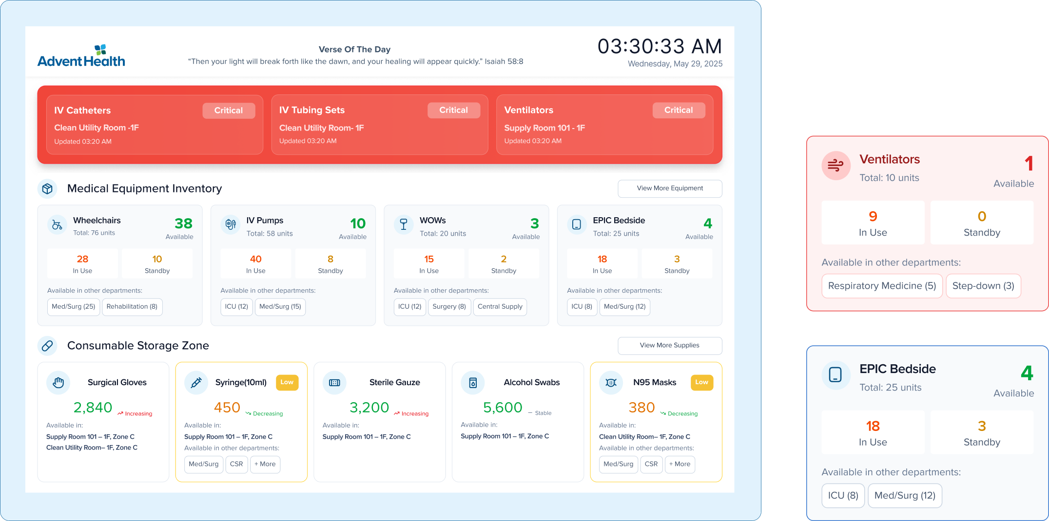 Empower AdventHealth to build a people-centered smart hospital by simplifying how clinicians find and act on equipment and supply information. The MVP reduces search time, minimizes interruptions, and improves decision clarity—giving staff more time for patient care.